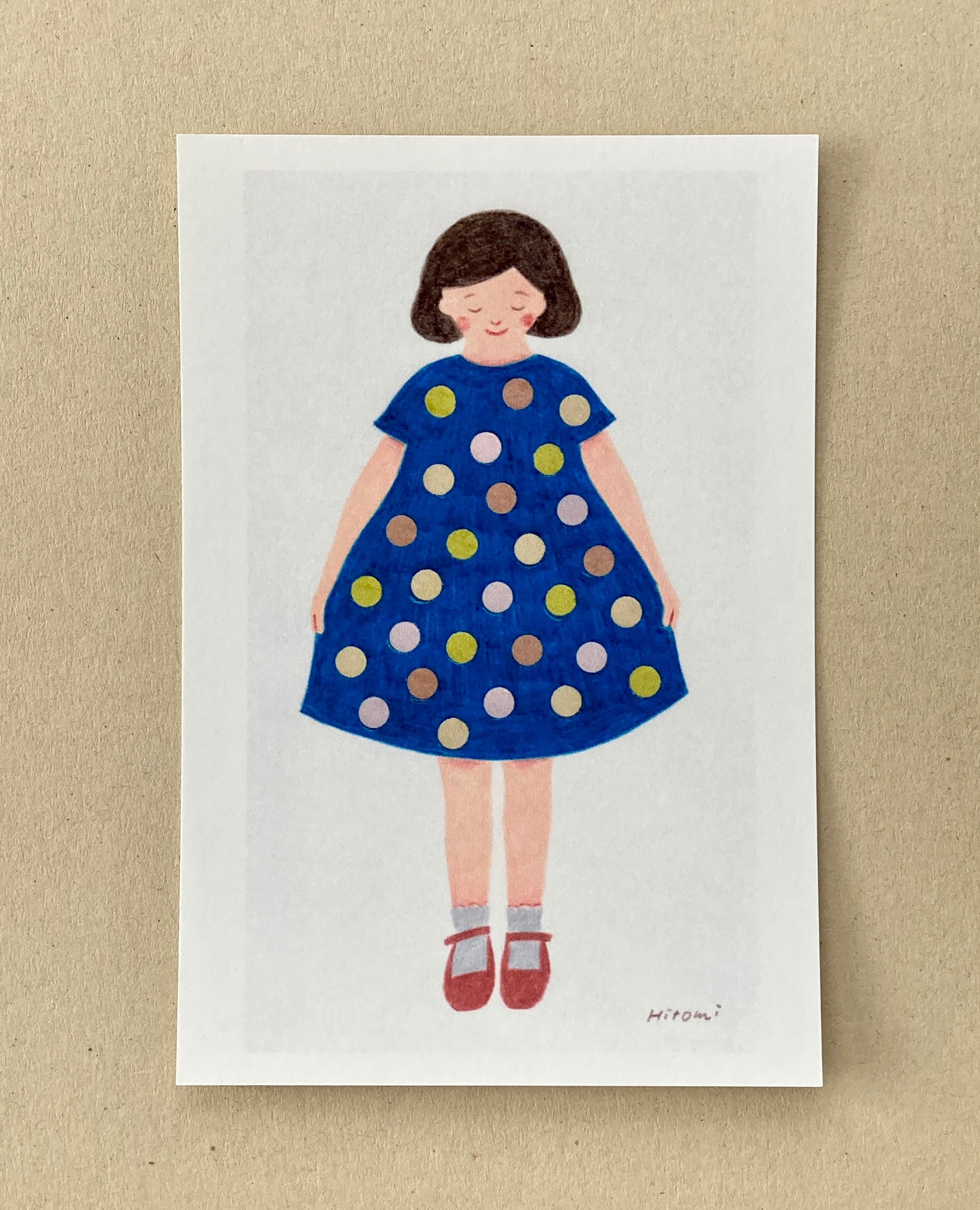 ポストカード 「みずたまもようのワンピース」 | 絵本作家 近藤瞳のネットショップ